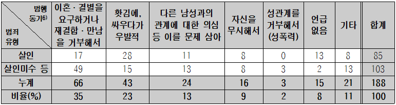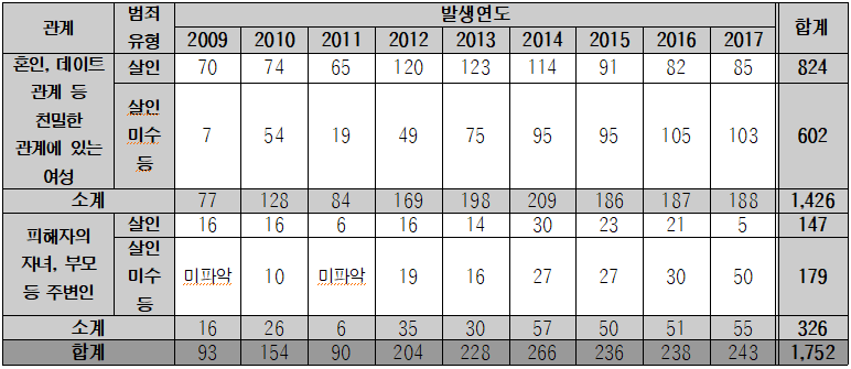 친밀한 관계에 있는 남성에게 살해당한 여성 통계 분석