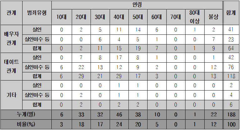 살인으로 이어지는 데이트폭력, 20대와 40대의 피해자 수 동일하게 나타나