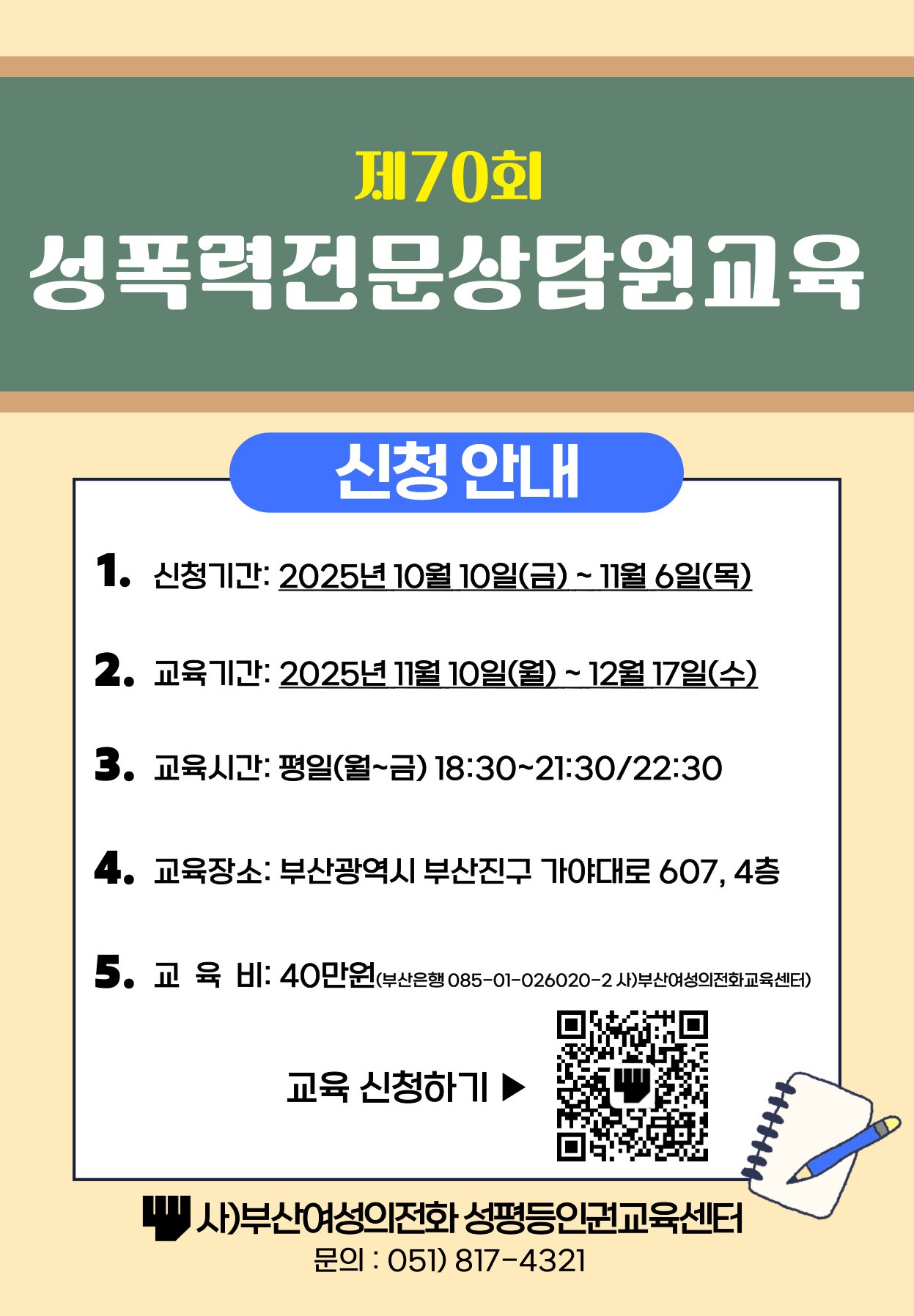 ● 교 육 비 : 40만원 (부산은행 085-01-026020-2 사)부산여성의전화교육센터)