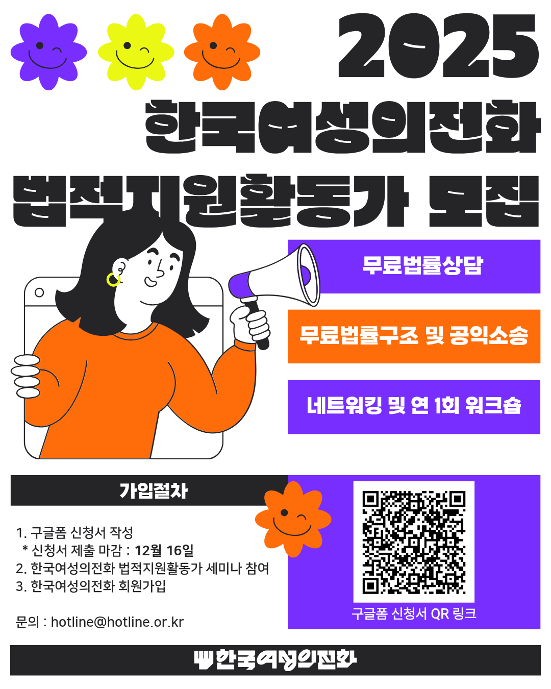 여성폭력 피해자 곁에서 법적 정의를 세우는 일, 한국여성의전화와 함께합시다✊